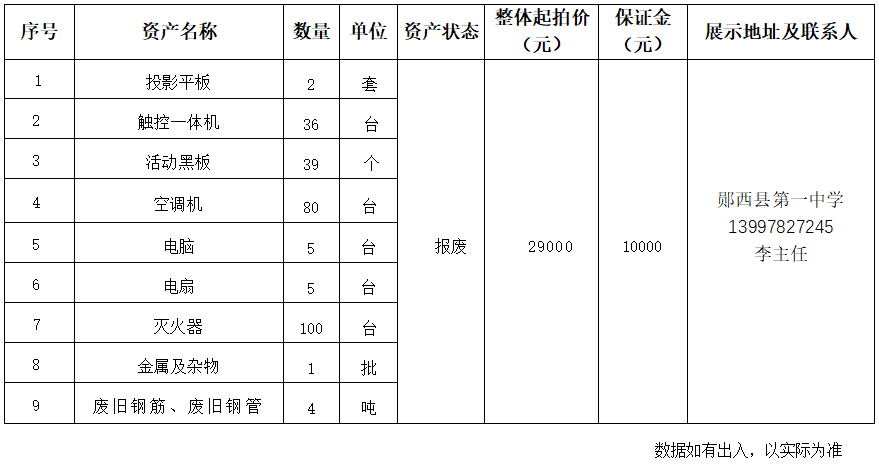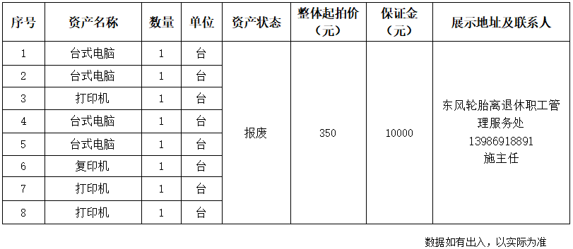 2.湖北省十堰市东风轮胎离退休职工管理服务处报废资产: