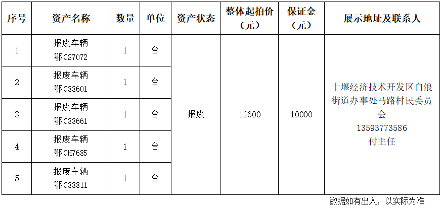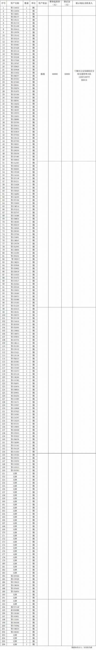 4.湖北省十堰经济技术开发区白浪街道办事处马路村民委员会报废车辆: