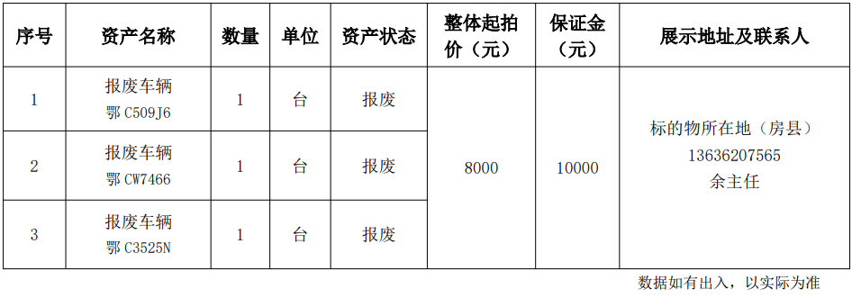 5.湖北省十堰市房县行政事业单位报废车辆: