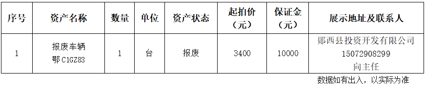 6.湖北省十堰市郧西县投资开发有限公司报废车辆:
